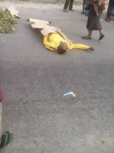 According to a LIB reader who is at the scene, a policeman this morning allegedly shot dead this man who was riding an Okada. He said the man's corpse is still lying on the road and has caused a lot of traffic along Badore Road, in Ajah. He said he got there after the altercation and shooting had occurred but will try to find out what happened. Details later...